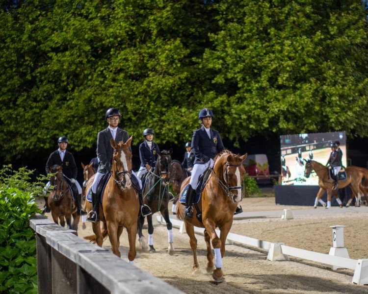 No sábado à noite, as turmas do 2.º C e 3.º C do Curso Profissional Técnico de Gestão Equina participaram numa apresentação especial. Os alunos do 2.º C, Tomás Nicola com L’Iton, André Silva com Aragonês HP, Inês Cruz com Daxx du Hans e Tiago Francisco com Osman de la Gesse, e os do 3.º C, Leonor Araújo com Lord, Lara Borges com Hiza, Filipa Cruz com Eklypse, David Castelo com Polvilho AR e Carolina Cabreira com Eco Loyal, acompanhados pela Professora Luísa Espadanal, realizaram uma reprise com música a cavalo.