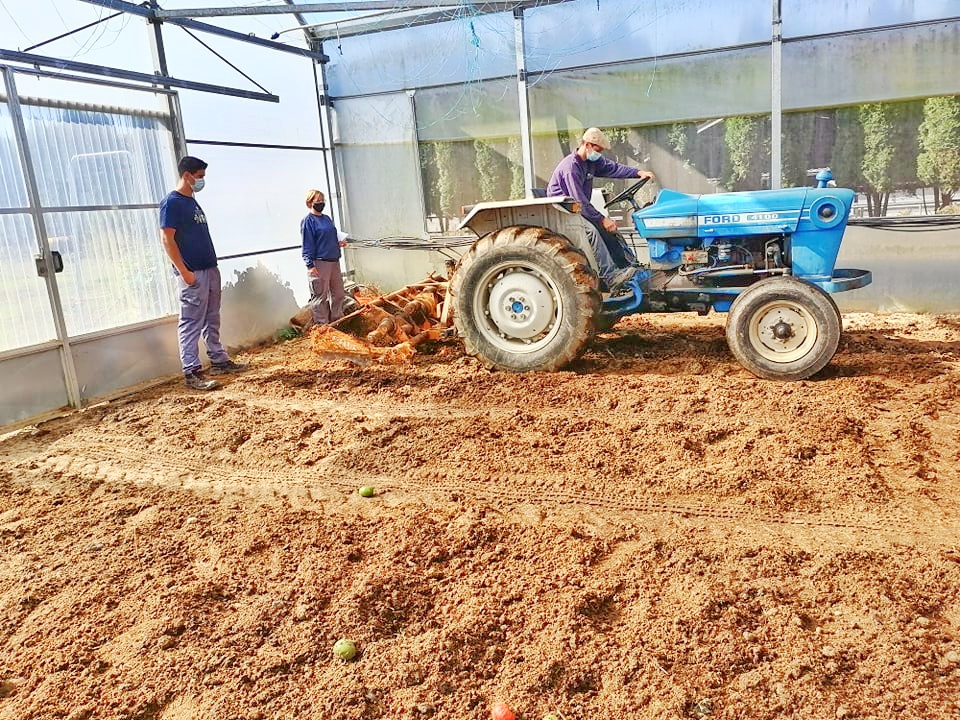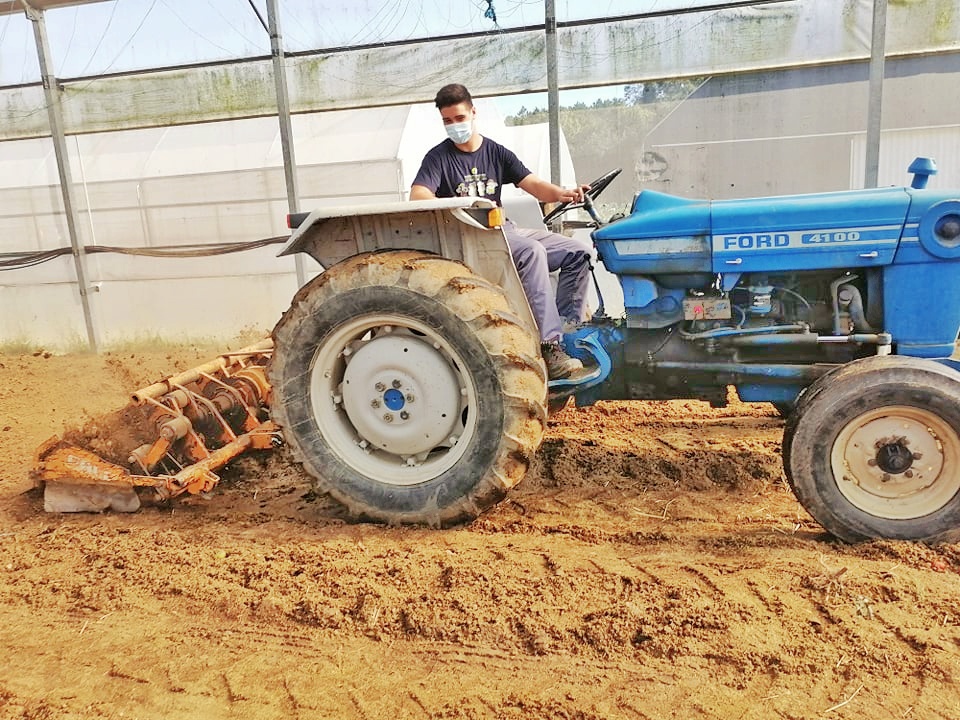 Posteriormente, os alunos João Fernandes, Daniel Dantas, José Costa e João Sobral, do 2.º A, procederam à execução das tarefas no interior da estufa, evidenciando grande com destreza a operar a enxada mecânica. Vulgarmente designada de “cavadeira”, a enxada mecânica é uma alfaia que trabalha acionada pela tomada de força e se enquadra no grupo de alfaias que integram as mobilizações secundárias. A enxada mecânica possui um veio horizontal, onde estão montadas várias enxadas que se assemelham ao trabalho das enxadas manuais. Consiste numa alfaia indicada para mobilizações que pretendam evitar o calo de lavoura e que apresentam uma textura/estrutura do solo delicada e com um aspeto superficial liso e uniforme.