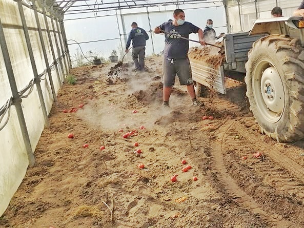 Removeu-se o estrume da nitreira, tendo o aluno Pedro Leitão, do 1.º A, efetuado o seu transporte. Nas estufas, os alunos do 2.º A e do 1.º A, realizaram, conjuntamente, a descarga e espalhamento do estrume.