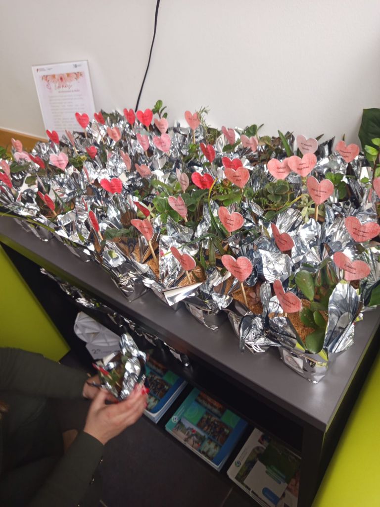 Para assinalar esta data, foram distribuídos vasos com plantas aromáticas e suculentas, personalizados com o nome de cada mulher. As professoras foram convidadas a receber o seu presente como expressão de apreço, gratidão e respeito por parte dos seus alunos.